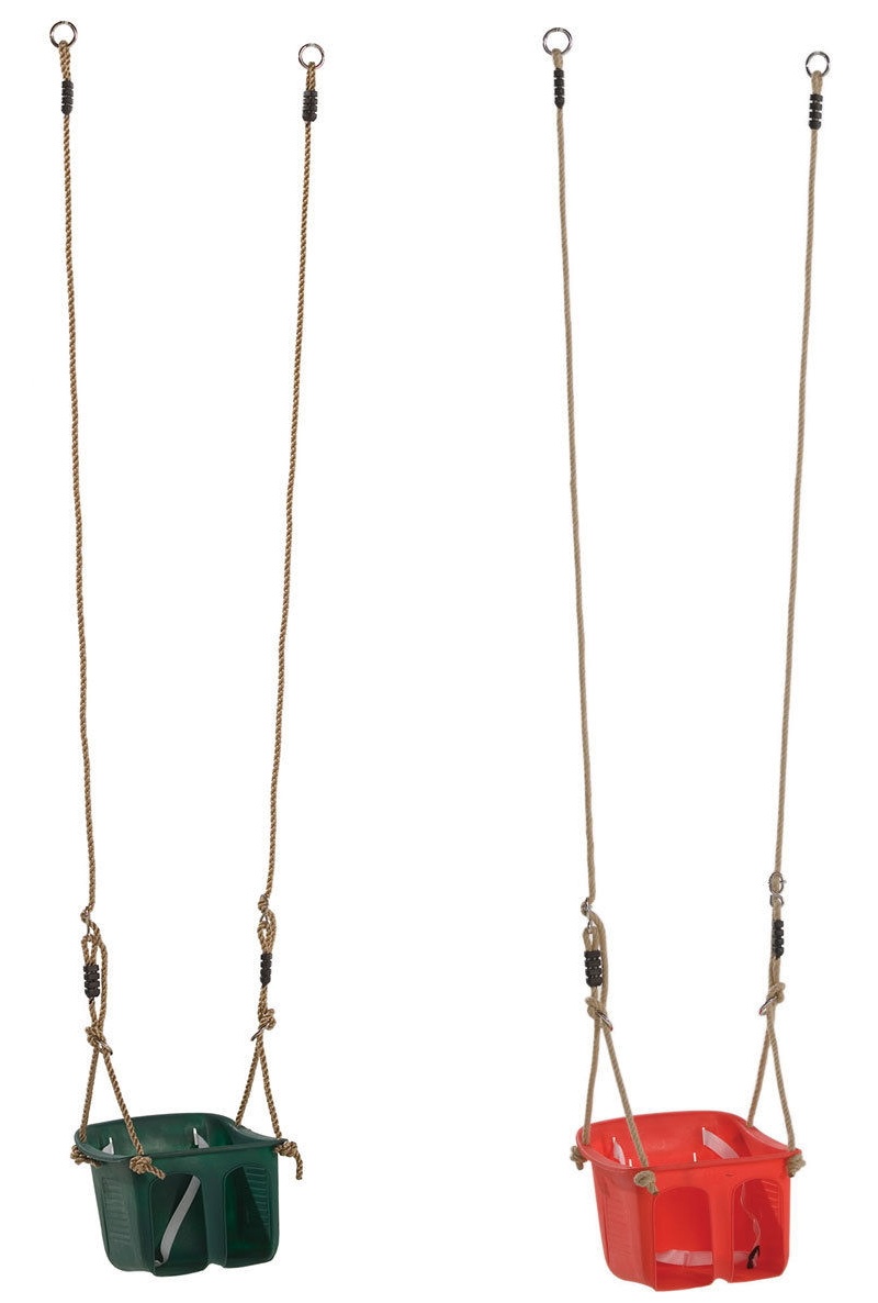 KBT din plastic rigid scaun pentru copil are noduri la partea de jos a scaunului pentru a adăuga un plus de stabilitate. Nodurile sunt topite împreună pentru a le asigura. Inele și optari sunt realizate din oțel galvanizat. Sudurile pe corzi sunt făcute în PP negru.