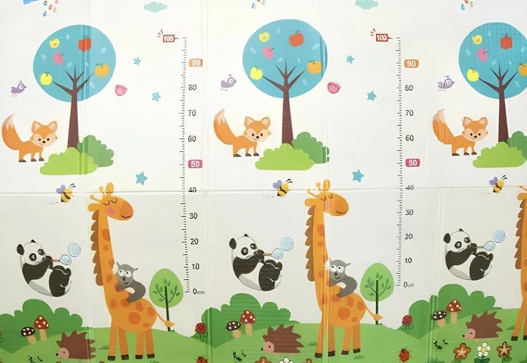 Covorașul pliabil pe două fețe are modele și texturi colorate și variate, care ajută la dezvoltarea vederii și a simțului tactil. Acesta conține imagini cu animale, litere, cifre și forme, contribuind la dezvoltarea mentală și motrică a copiilor.