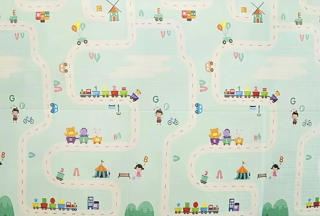 - Structura pe două fețe a covorașului reprezintă un avantaj unic. Fiecare parte are un design inovator. Acesta stimulează nu doar simțurile copilului, ci și imaginația, încurajând jocul creativ.