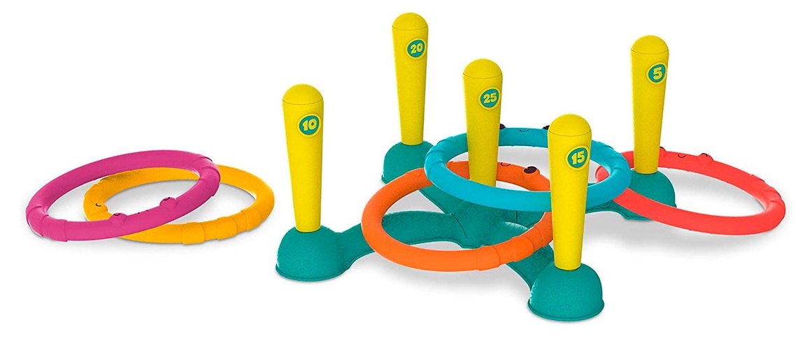 Acest set de joc ii va oferi micutului tau distractie nelimitata si il va ajuta sa-si dezvolte precizia, dexterietatea si coordonarea miscarilor. Scopul jocului: sa arunci cit mai multe inele pe betisoare si sa acumulezi punctaj maximal. Aruncand inele jucatorul poate obtine de la 5 la 25 de puncte.