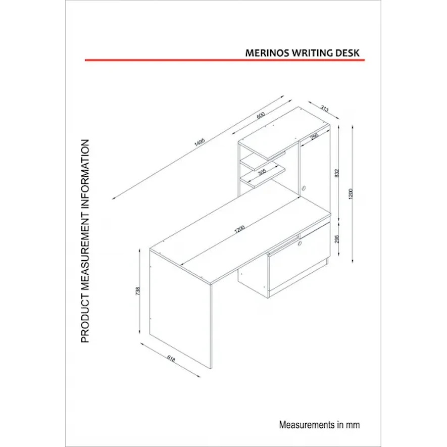 Masa de birou Trendy Merinos White/Walnut 149.5x120x61.8cm GTR006595