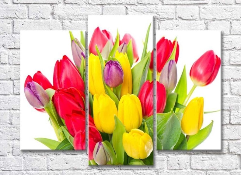 Pictură Gallerix Triptych bouquet of colorful tulips (500732)