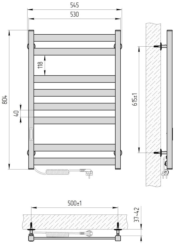 Uscător de prosoape Laris Kvatro CK8 500х800 Graphite Elektro L