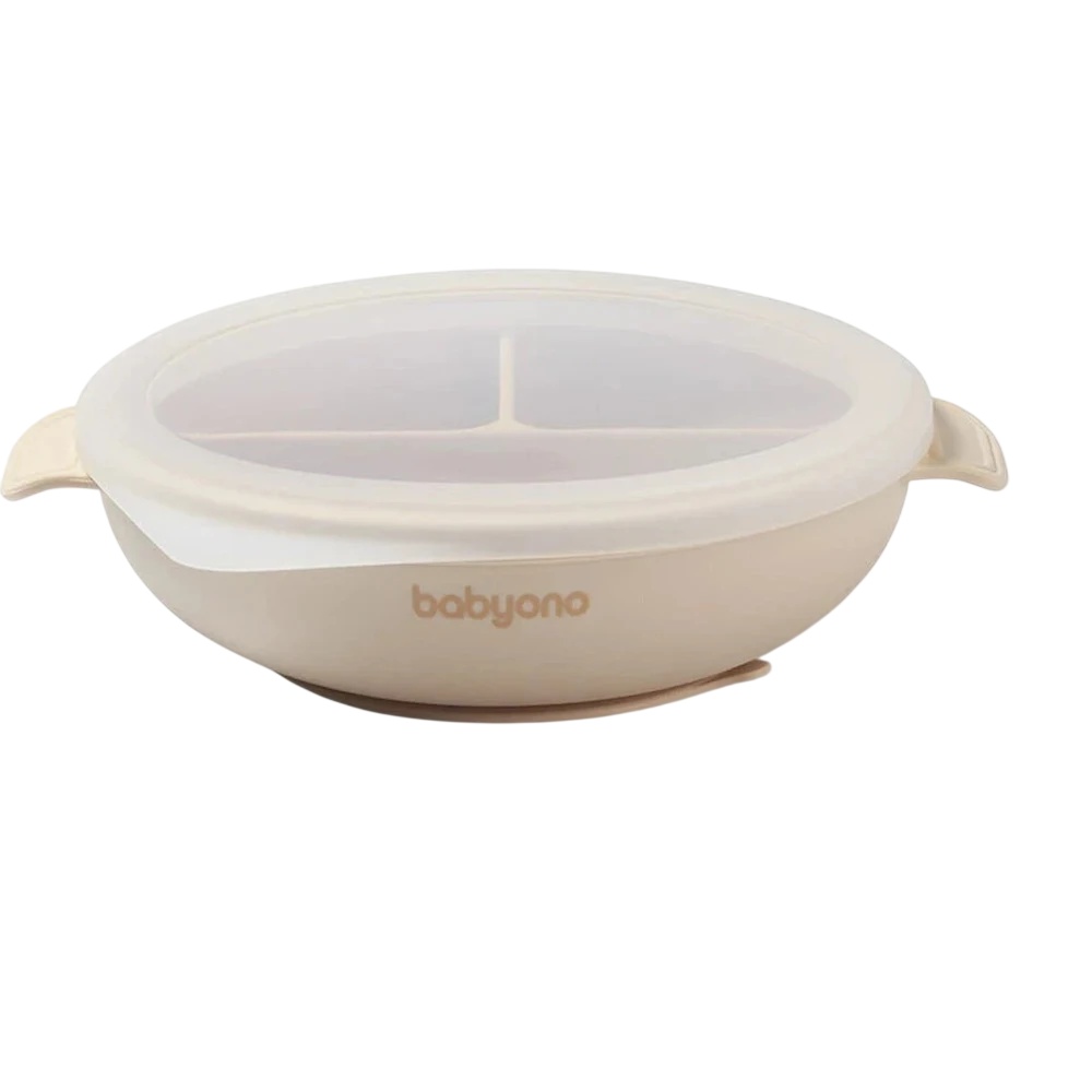 Farfuria compartimentată BabyOno, cu ventuză și capac, este ideală pentru introducerea alimentelor solide și pentru metoda BLW. Oferă siguranță, igienă și comoditate, prevenind mizeria la mese și încurajând autonomia copilului.