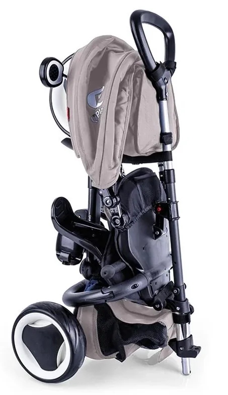 Qplay Rito+ evolueaza pe masura ce nevoile copilului cresc. Dotata cu 2 seturi de suporti de picioare, tricicleta poate fi utilizata de la varsta de 12 luni gratie suportului de picioare pentru bebelusi care asigura o pozitie confortabila si sigura. Pe masura ce copilasul trece in alte etape ale cresterii, tricicleta se modifica prin indepartarea componentelor precum inelul de protectie, copertina, suporturile de picioare. Pliabila in mai putin de 15 secunde, tricicleta devine suficient de compacta pentru a putea fi transportata oriunde sau depozitata in casa fara a ocupa prea mult spatiu.