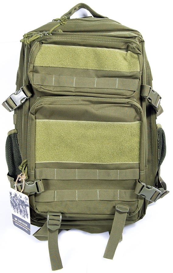 Rucsacul tactic Chevron CA‑001‑1‑GRCP, cu volum de 45 l, este realizat din materiale de înaltă calitate și dispune de două compartimente principale spațioase și două buzunare administrative pentru obiectele esențiale. Pentru confortul deschiderii, fermoarul are un mâner flexibil și practic. Rucsacul este echipat cu sistemul MOLLE, care permite atașarea de accesorii, cum ar fi un suport suplimentar, trusa de prim ajutor sau un covoraș special, reducând greutatea totală cu aproximativ o treime comparativ cu sistemele obișnuite. Pe exterior există velcro pentru atașarea ecusonelor, insignelor și emblemelor. Chevron CA‑001‑1‑GRCP este un accesoriu universal, potrivit atât pentru misiuni tactice, cât și pentru turism și activități în aer liber, indiferent de condițiile meteo.