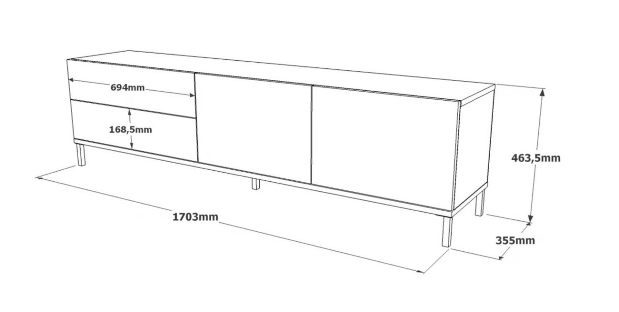 Cu design modern și original, acest suport tv reprezintă un element potrivit pentru orice spațiu de locuit. Picioarele metalice de inspirație industrială adaugă o notă de eleganță, în timp ce designul general conferă un aspect sofisticat camerei.