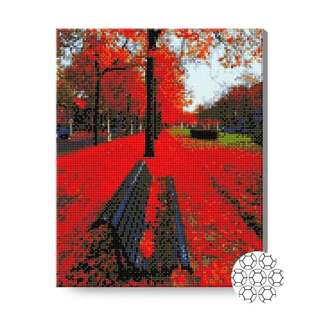Pictura cu diamante după numere Art Gallery Premium Scarlet foliage on the bench 40*50cm (GA79722)