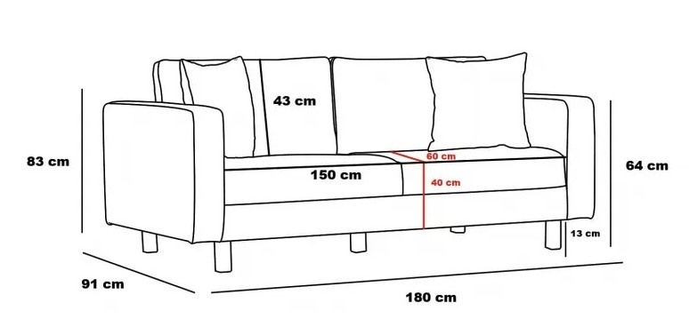 Dimensiunea canapelei (l×L×Î)180x91x83 cm