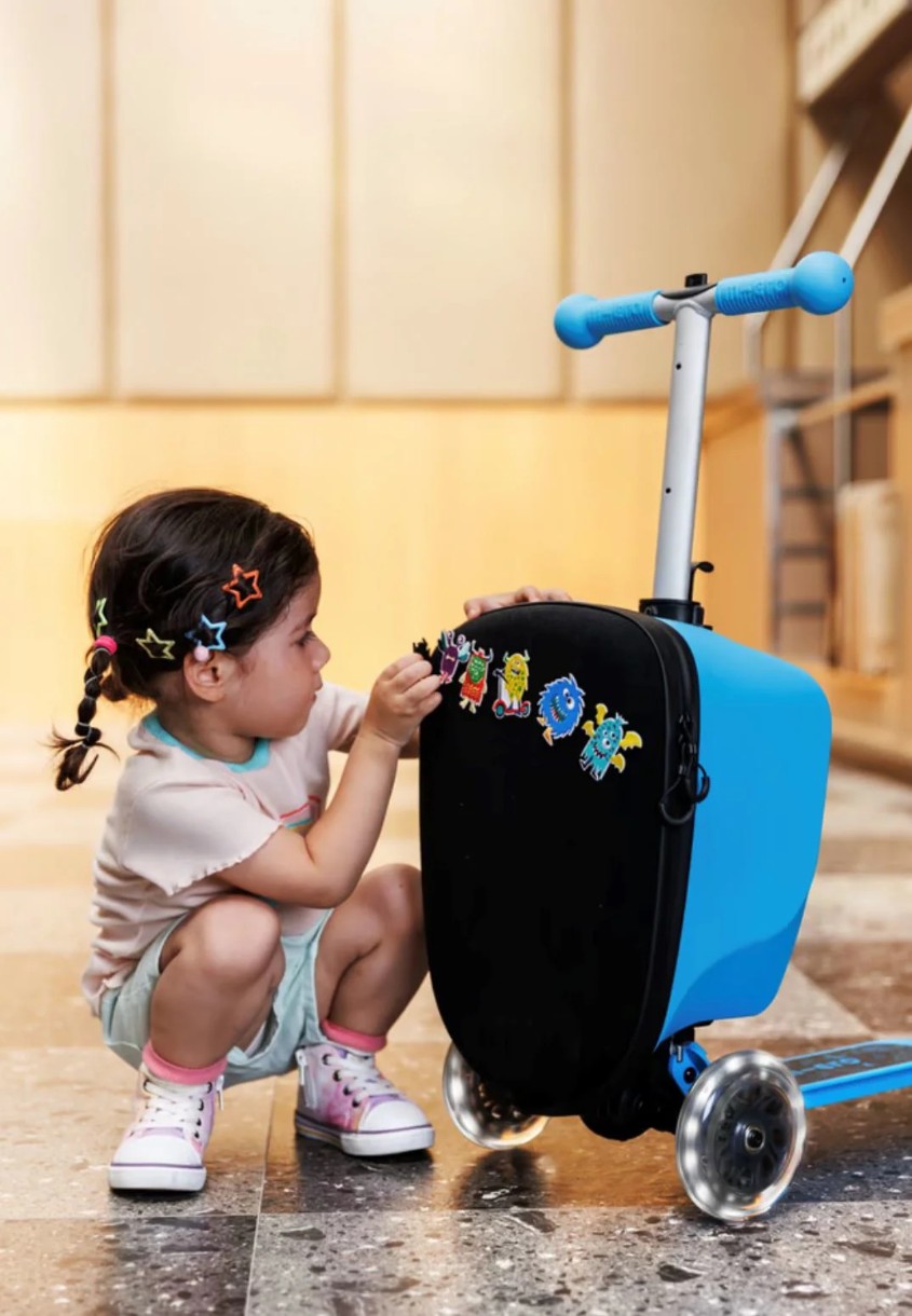 Trotineta, valiza si troller – toate intr-un singur produs, pentru calatorii relaxate si copii fericiti.
