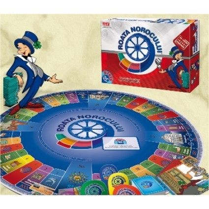 Un joc plin de suspans pentru intreaga familie. Roata norocului este un joc colectiv de strategie, unde norocul joaca un rol important. Scopul jocului este de a castiga bani, ca apoi, prin buna administrare ai acestora, sa cumperi cat mai repede o locuinta si sa amenajezi o camera. Castigatorul va fi acela, care isi amenajeaza primul camera si va aduna primul cel putin 1000 ron. Pentru 2-6 jucatori.
