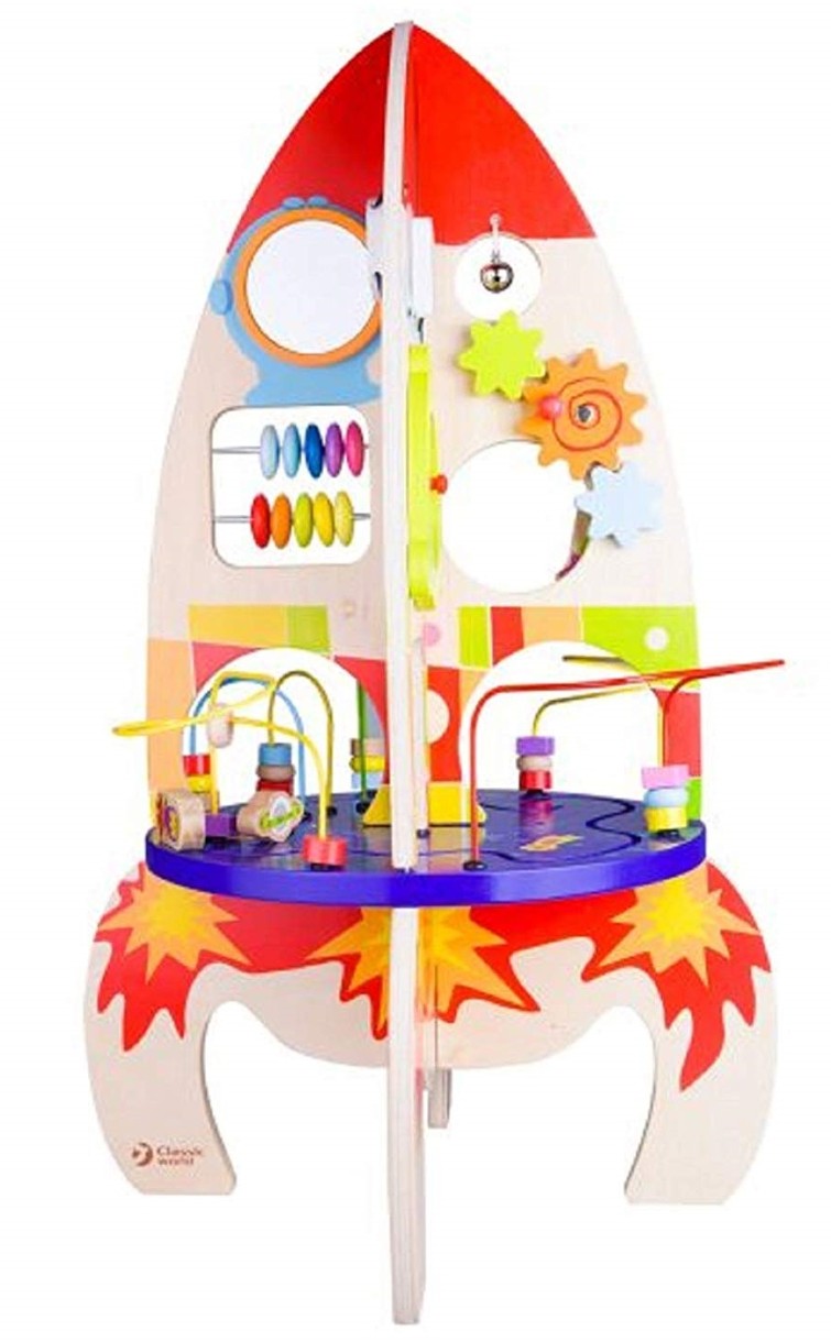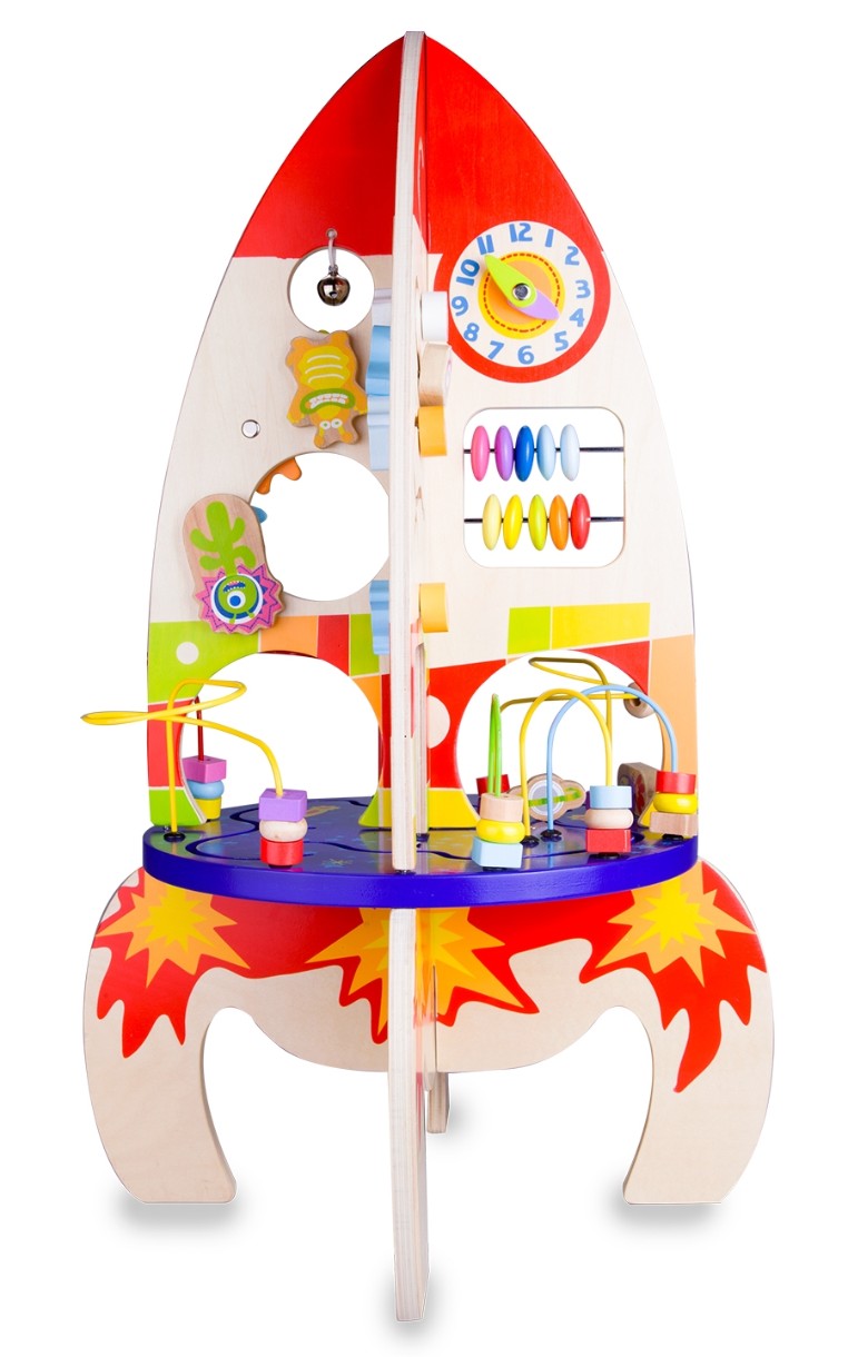 Racheta este un centru de dezvoltare multifuncțional, care include: un labirint fascinant, abacus, oglindă, unelte vizuale, un clopot. Jucăria este fabricată din lemn natural, iar vopselele folosite sunt sigure pentru sănătate.