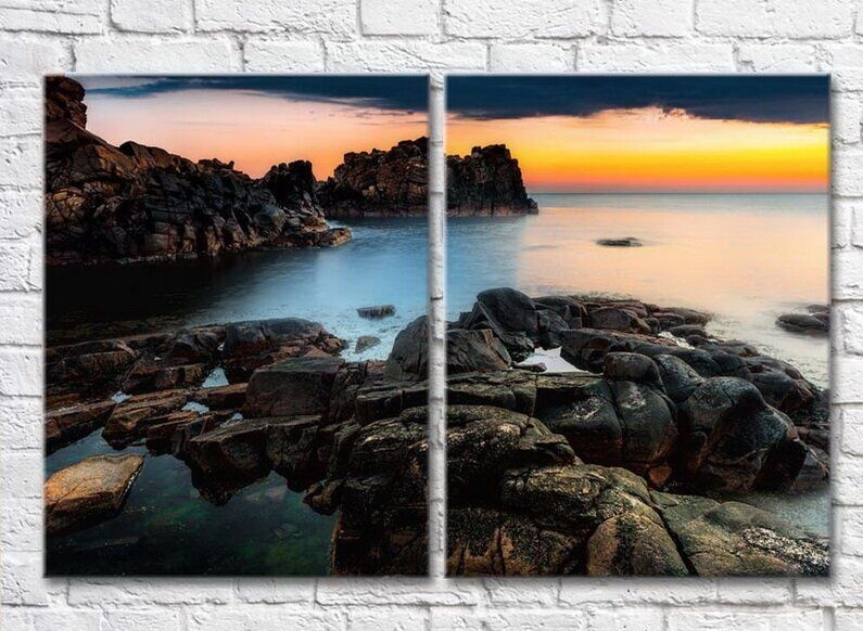 Pictură ArtPoster Rocks in the sea at sunrise (3453816)