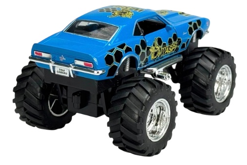 Modelul de monster truck Welly 1968 Chevrolet Camaro Z28 Big Wheel la scară 1:38 este o jucărie impresionantă pentru colecționari și iubitorii de vehicule off-road.Acest monster truck este realizat la scară 1:38 și este echipat cu roți mari, oferindu-i un aspect agresiv și puternic. Modelul este fabricat din metal cu elemente din plastic, asigurându-i rezistența și durabilitatea. Dispune de funcția pull-back: pentru a se deplasa, este suficient să tragi mașina înapoi și aceasta va porni înainte.