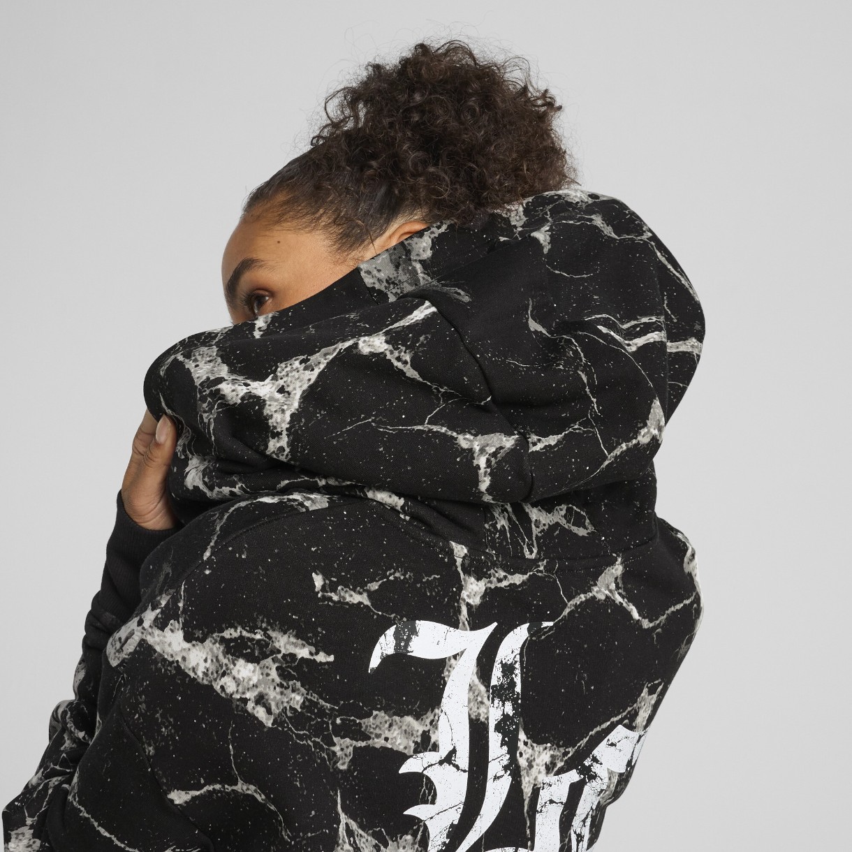 Hanorac damă Puma Hoops X Lafrance Written In Chrome Crop Hoodie Puma Black/White Aop, s.M