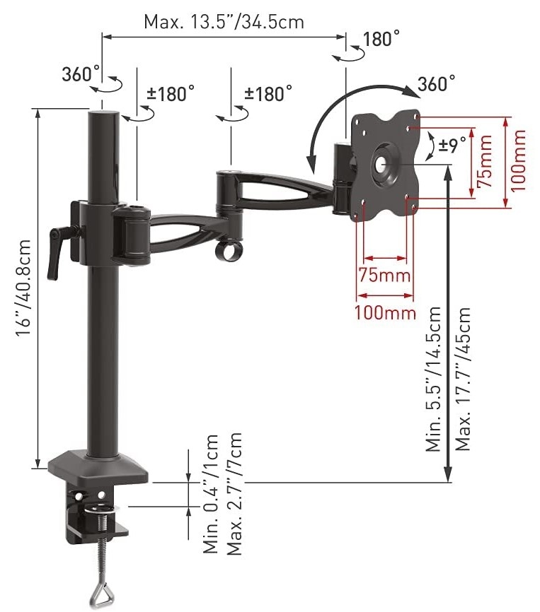 Standard VESA75x75, 100x100 mm
