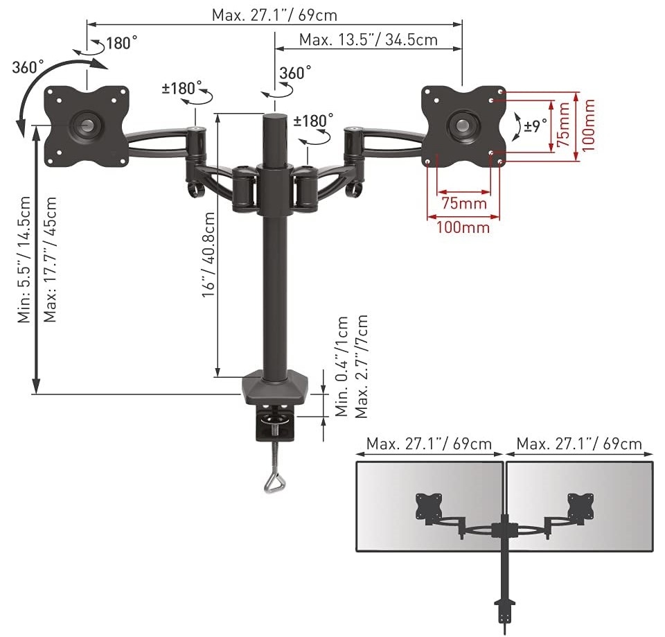 Standard VESA75x75, 100x100 mm