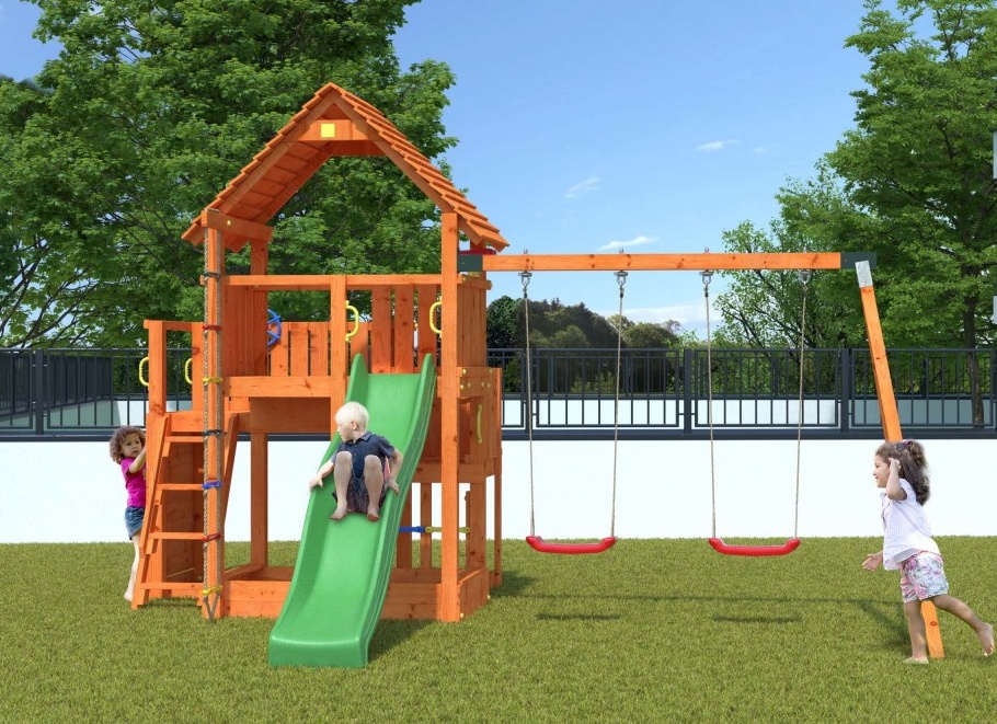 In settobogan, leagăne, scara, perete de alpinism, nisipar