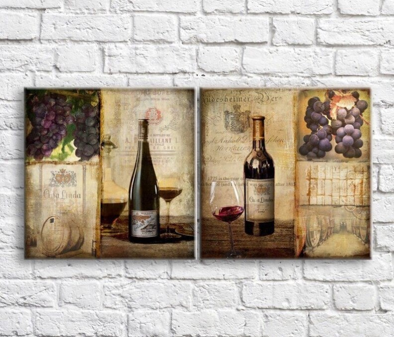 Pictură ArtPoster A bottle of wine barrels and grapes in vintage style (3478717)