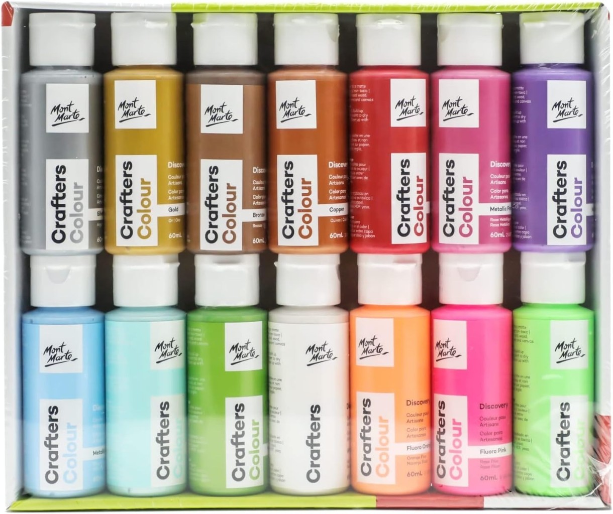 Vopsele de artă Mont Marte Crafters Metallic & Fluoro PMCA6002 14pcs x 60ml
