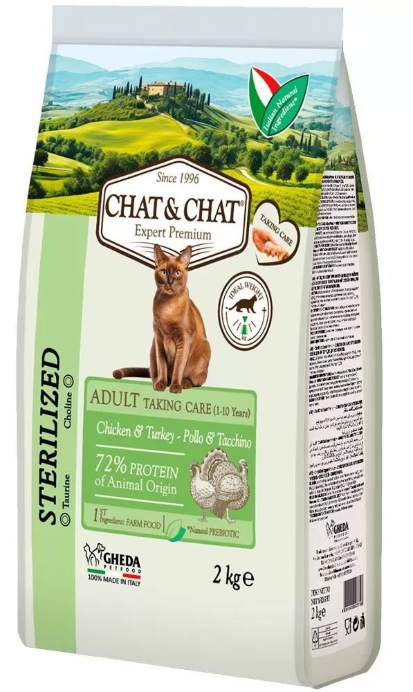 Hrană uscată pentru pisici Gheda Chat & Chat Adult Sterilized White Meat Poulty 2kg