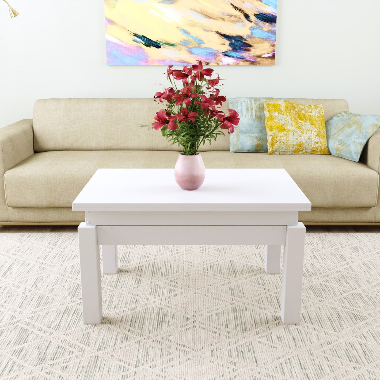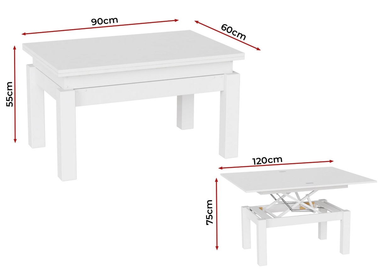 Măsuţă cafea MobiCasa B FLY Transformer 60/120x90 Alaska/Alb