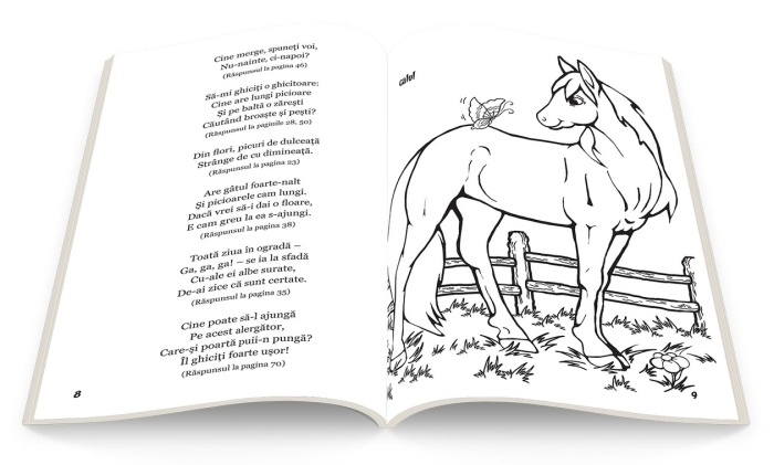 "Cartea de colorat cu ghicitori” încurajează copilul să găsească și să coloreze răspunsul la o sumedenie de ghicitori simpatice.