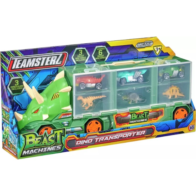 Teamsterz Beast Machines Dino Transporter este un set de joacă spectaculos care combină lumea mașinilor cu cea a dinozaurilor! Copilul tău poate transporta mașinuțele și figurinele preferate într-o valiză rezistentă în formă de triceratops.