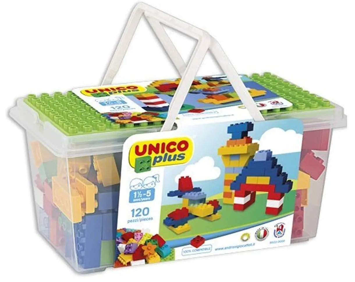 Coșul mare de cărămizi UnicoPlus: 120 de bucăți este un set de cărămizi de construcție care este ideal pentru copiii cărora le plac jocurile creative și de construcție. Iată principalele sale caracteristici: