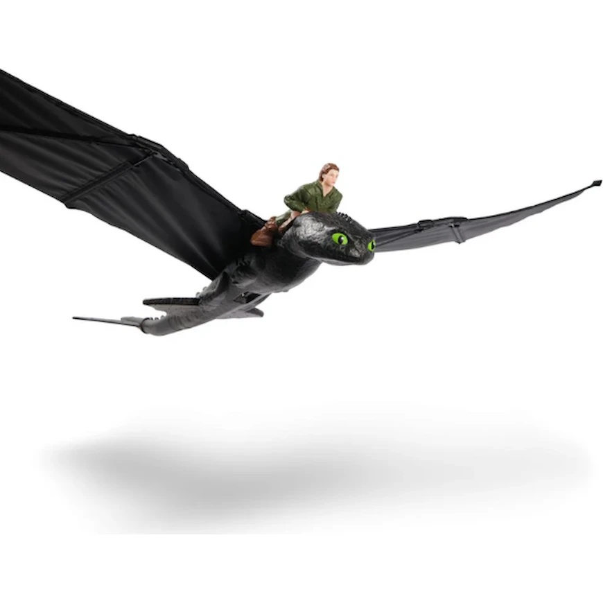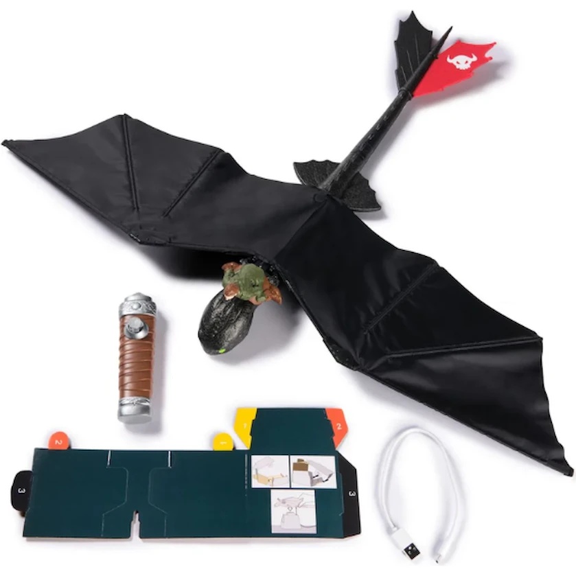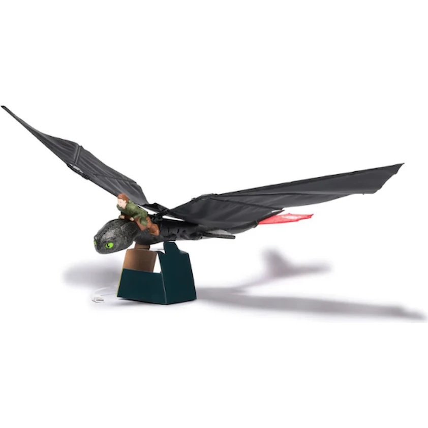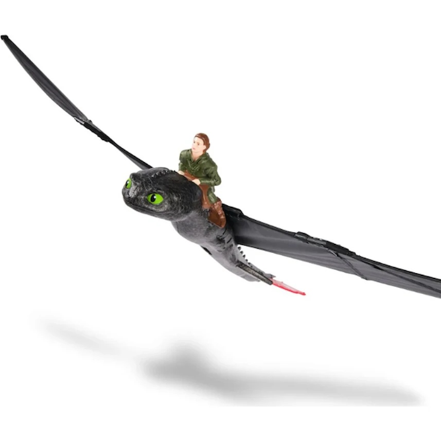 Cu ajutorul telecomenzii ușor de folosit, Toothless poate fi lansat rapid și navighează cu ușurință prin cameră sau în aer liber. Setul include o telecomandă de 2,4 GHz cu rază de acțiune de până la 75 de metri, permițând copiilor și adulților să controleze Toothless, exact ca în filmul preferat. Copiii vor adora să-l vadă planând și dând din aripi ca un dragon adevărat!