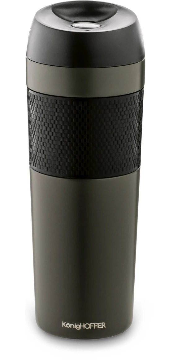 Cana cu pereți dubli și izolație termică vidată Konighoffer Nevis are o capacitate de 450 ml. Este potrivită atât pentru călătorii mici, cât și mari, precum și pentru cafeaua de la birou. Modelul este etanș, iar pentru a bea, este suficient să folosești un mecanism simplu. Închiderea are o formă care oferă confort în stârpirea setei.