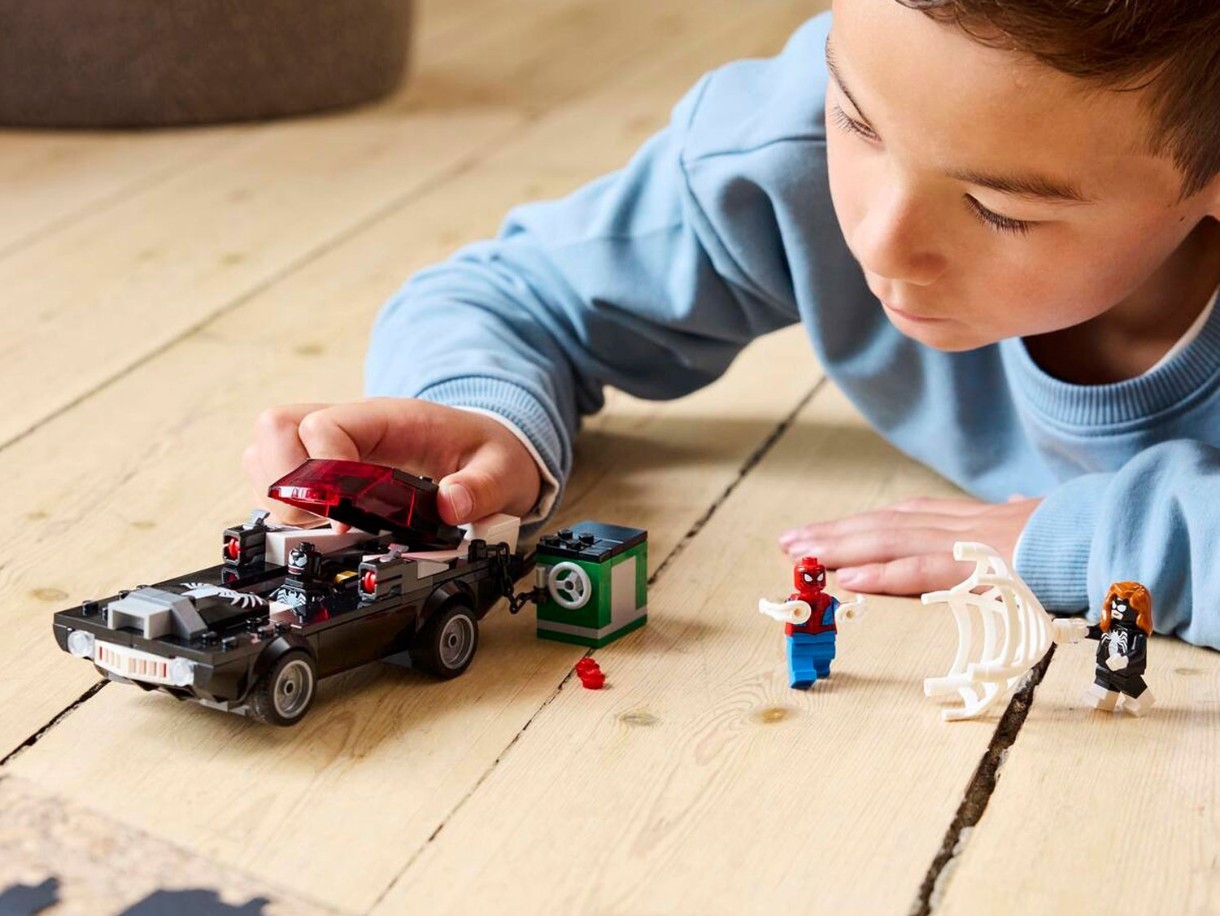 Vehiculul-Păianjen Spider-Man vs. Venom (76309) este un set de joacă cu mașini construibile, de înaltă calitate, pentru băieți și fete cu vârsta de 7 ani și peste. Acest set LEGO® de construit și jucat este cadoul perfect pentru tinerii supereroi, în special pentru fanii Marvel și copiii care iubesc jucăriile pline de acțiune. Setul include 3 minifigurine: Spider-Man cu un lansator de pânze, Venom cu 4 tentacule și Spider-Woman (Julia Carpenter) cu o pânză flexibilă suficient de mare pentru a-l prinde în capcană pe ticălos. Vehiculul Venomizat are lansatoare de piroane pe fiecare parte, un motor accesibil și o cabină deschisă. Venom poate sta în interiorul vehiculului prin îndepărtarea celor 2 tentacule inferioare, care pot fi folosite pentru a otrăvi vehiculul. Un seif cu lingouri de aur inspiră jocul de rol între eroi și ticăloși. Seiful poate fi transportat într-o mașină, care are și un compartiment pentru lingouri de aur. Pentru o distracție digitală sporită, constructorii pot mări, roti modelele în 3D și pot urmări progresul folosind aplicația distractivă și intuitivă LEGO Builder.