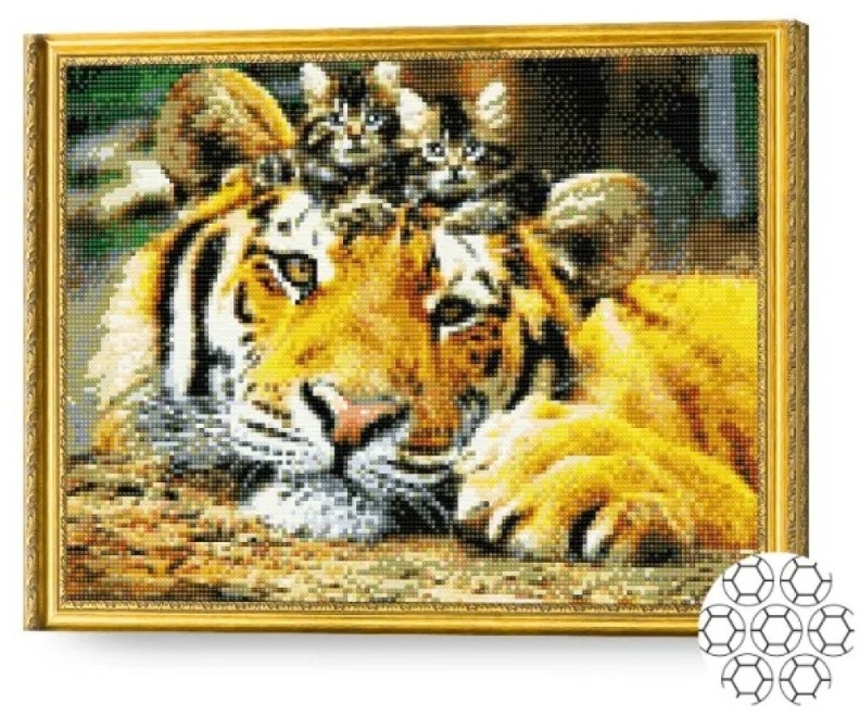 Pictura cu diamante după numere Art Gallery Premium Тигр и котята 40x50cm (GA86330)