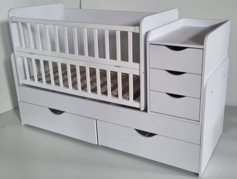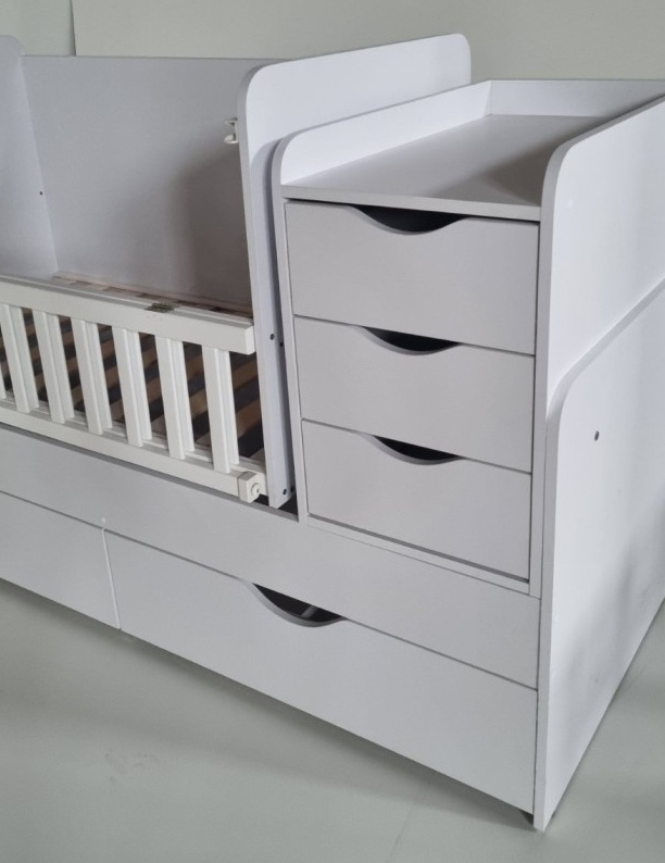 Pătuțul are sertare în care poți depozita toate lucrurile și accesoriile necesare pentru bebeluș.