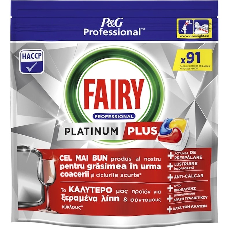 Detergent pentru mașine de spălat vase Fairy Professional Platinum Plus Lemon 91pcs