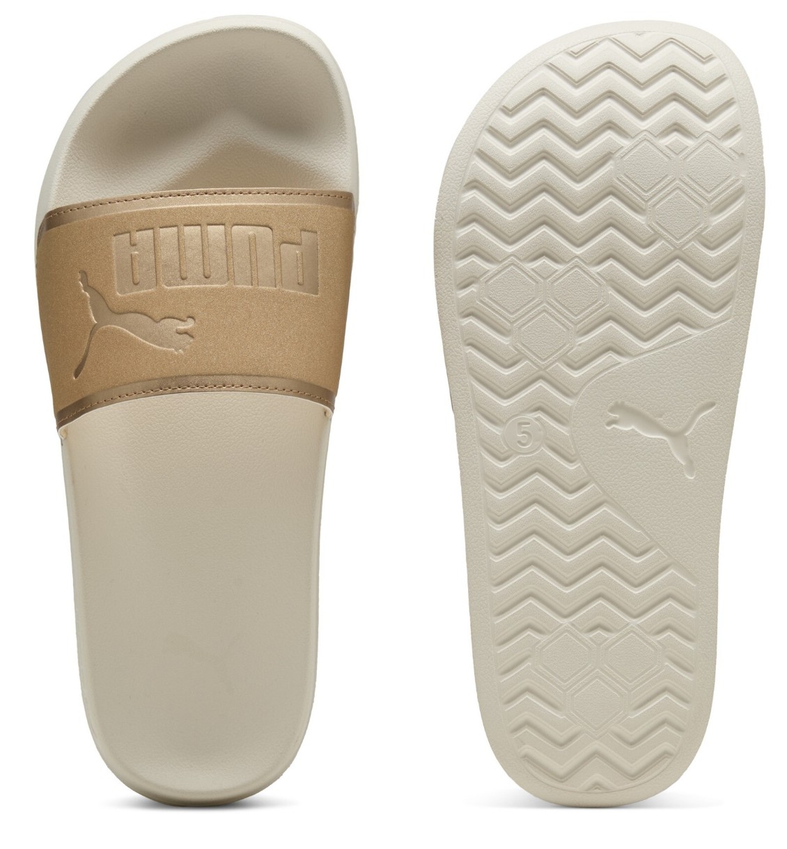 Șlapi pentru femei Puma Leadcat 2.0 Aqua Metallics Alpine Snow/Puma Gold/Light Sand, s.35.5
