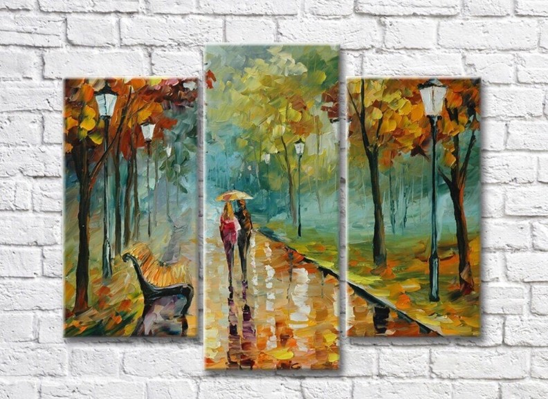 Pictură Rainbow Park alley with lanterns and a couple under an umbrella (35110193)
