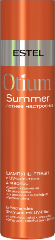 Linia de produse de îngrijire Otium Summer a fost dezvoltată de o echipă de profesioniști din marca cosmetică Estel Professional special pentru îngrijirea și protejarea buclelor de efectele agresive ale soarelui în primăvară și vară. Șamponul pentru păr din această serie nu numai că va oferi o curățare delicată, dar va satura și firele cu vitalitate, energie și dispoziție de vară. Compoziția sa atent gândită include proteine ​​de mătase, precum și sucuri de portocale și grapefruit, care vor compensa deficitul de vitamine și umezeala dătătoare de viață în structura buclelor.
