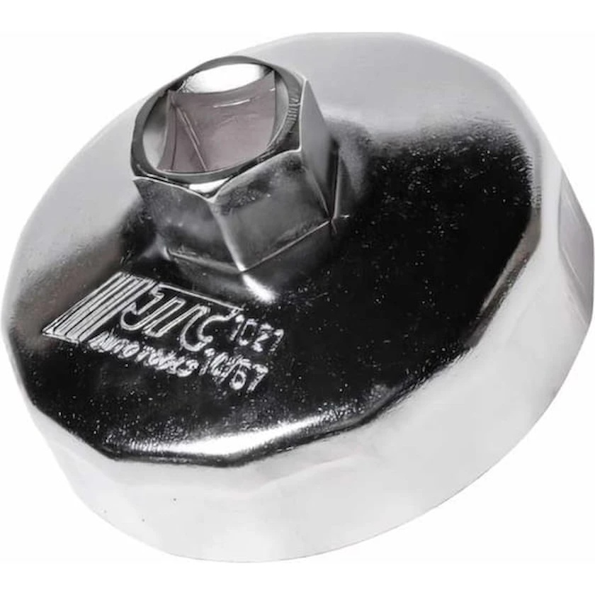 Съемник масляного фильтра 67мм 14-ти гранный чашка FORD,MITSUBISHI,MAZDA JTC 1021 este utilizat în timpul diagnosticării automobilelor în condiții de service auto. Forma cu 14 fețe a cupei garantează o prindere sigură a filtrului în timpul lucrului.