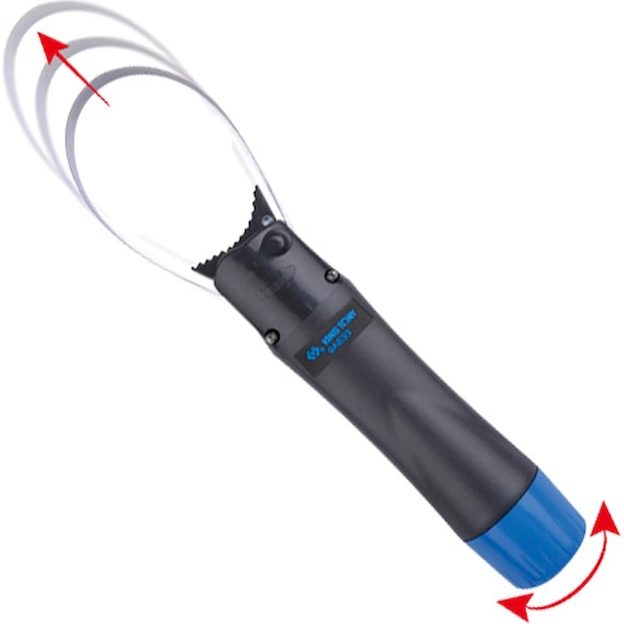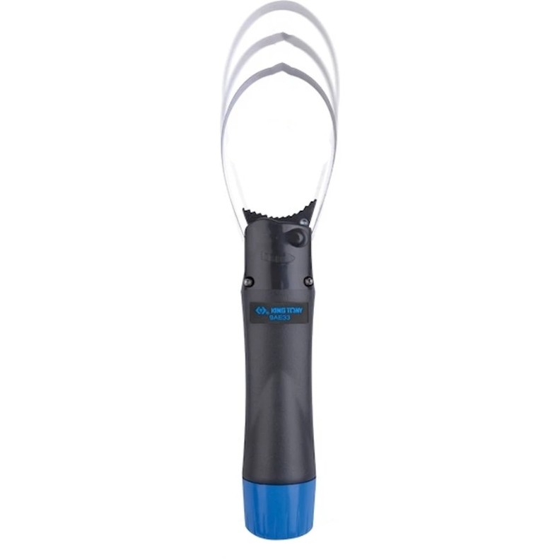 Sculptorul de filtre King Tony 9AE33-110 este destinat demontării și strângerii puternice a dopurilor de ulei ale carterului auto, precum și pentru lucrări cu filtrele de ulei, asigurând desfăcerea și strângerea rapidă și sigură a oricărui filtru de ulei, cu un diametru cuprins între 65 și 110 mm.