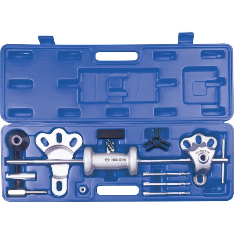 Set de extractoare universale cu ciocan inversat, 17 piese. Ciocanul inversat universal cu extractor pentru semi-axe și rulmenți este destinat lucrărilor de montare-demontare în cadrul întreținerii tehnice și reparației sistemului de suspensie al automobilelor de orice marcă.