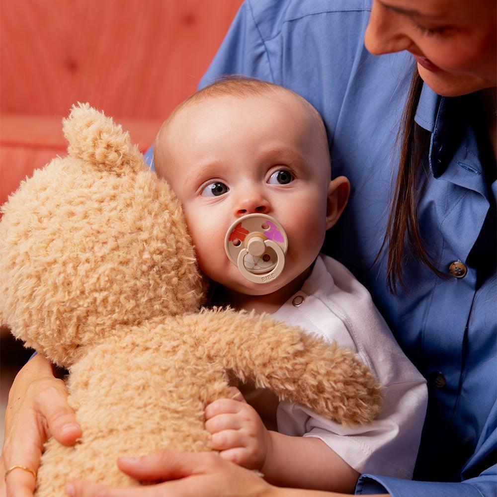 Suzetele BIBS Colour sunt realizate din latex, un material realizat din fluidul provenit de la arborele de cauciuc (hevea). Acest fluid este rafinat, obtinandu-se astfel latexul - un material rezistent, elastic, moale fiind asemanator ca textura cu sanul mamei.