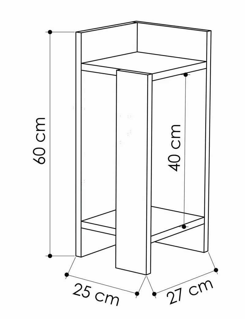 Cu dimensiunile compacte de 25 cm lățime, 60 cm înălțime și 27 cm adâncime, această noptieră este un accesoriu potrivit pentru orice dormitor. Cele două piese oferă spațiu amplu de depozitare pentru obiectele esențiale, în timp ce înălțimea raftului de 40 cm permite accesul facil la lucruri.