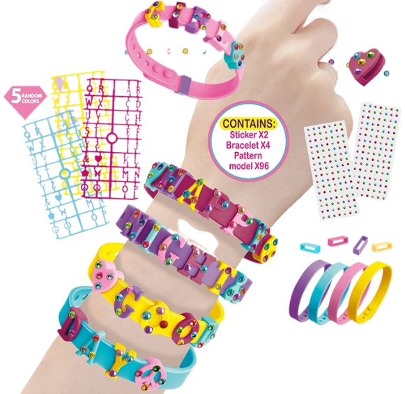 In set4 brățări, 2 foi cu autocolante, 96 elemente decorative