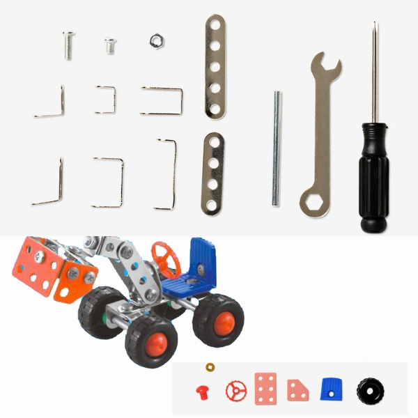 Intră în lumea ingineriei cu acest set STEM metalic în formă de excavator! Copiii pot construi propriul excavator folosind piese metalice rezistente, șuruburi și piulițe, dezvoltând abilități de motricitate fină, gândire logică și creativitate. Setul include uneltele necesare pentru asamblare și este potrivit pentru joacă individuală sau în echipă. Ideal pentru copii de la 6 ani în sus, combină distracția cu învățarea STEM.