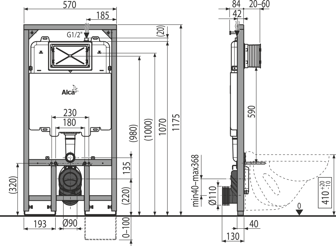 Rezervor WC îngropat cu cadru Alcaplast Sadromodul Slim AM1101/1200