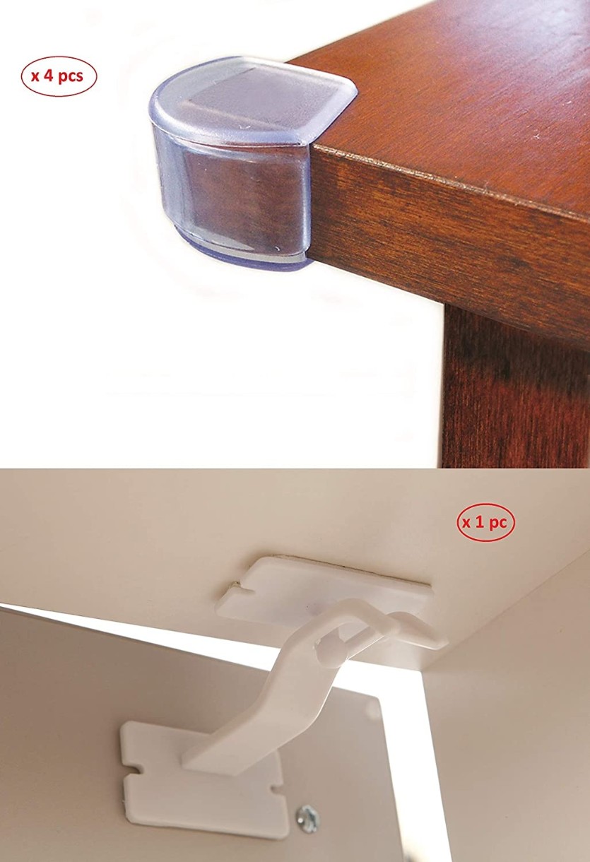 Setul include 35 de articole de securitate: 22 mufe pentru prize, 2 chei, 1 încuietor pentru electrocasnice, 1 blocare multifuncțională, 1 blocare multifuncțională, 1 blocare pentru colț, 1 blocare suplimentară, 1 mini-blocare pentru un dulap, 4 protecție pentru colțuri , 1 blocare pentru ușă.