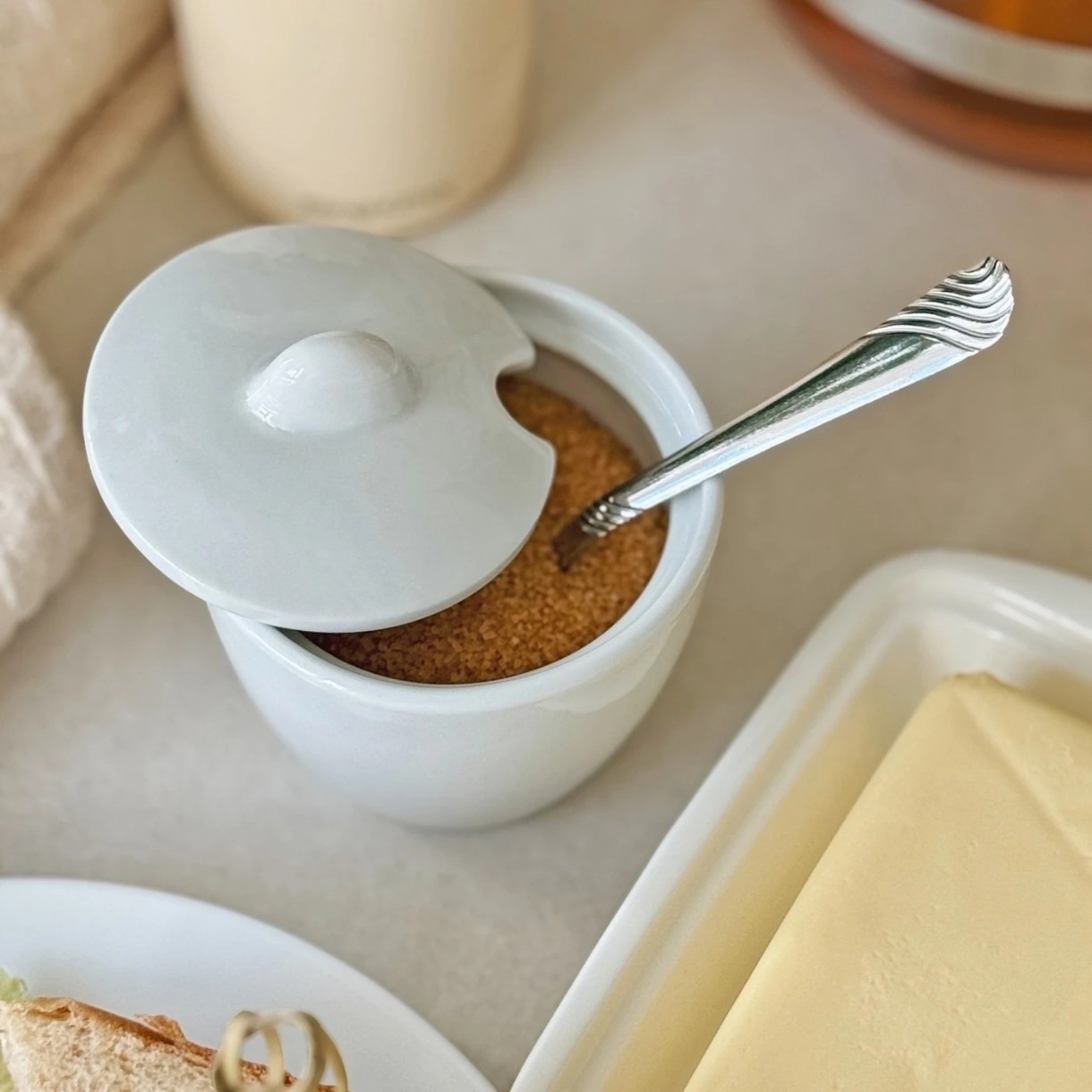 Produsul are un capac dedicat. Acesta va proteja rezerva dvs. de zahăr de contaminare. Decupajul din capacul zaharniței Tadar vă permite să serviți zahărul cu o linguriță!