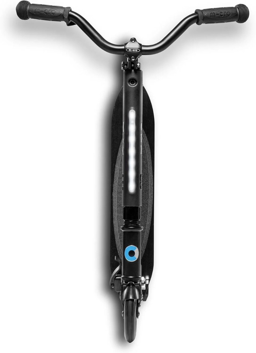 Rotile din silicon, rulmentii de buna calitate o fac silentioasa si placuta. Se poate plia si astfel ocupa foarte putin spatiu, fiind usor de transportat si depozitat. Ghidonul este telescopic si se ajusteaza in functie de inaltimea utilizatorului. Asta poate insemna ca si mami si tati pot da o tura cu trotineta, daca vor.