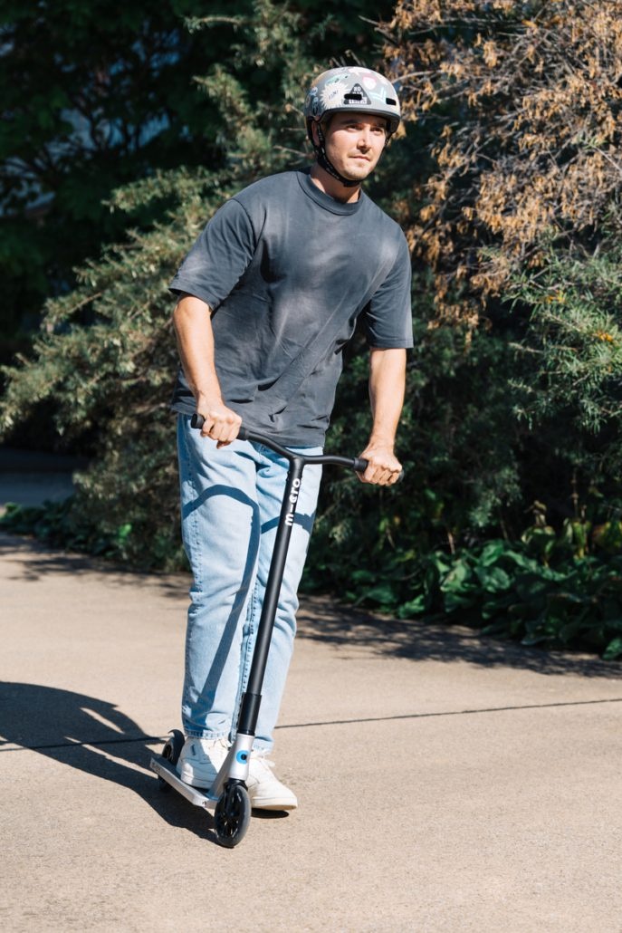 Ca o trotinetă adevărată pentru trucuri, Micro Trooper dispune de un ghidon fix, coborât și nu este pliabilă. Aceasta vine cu caracteristici avansate special concepute pentru trucuri: